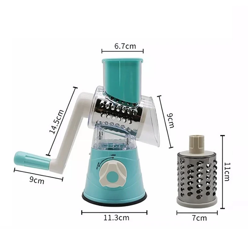 One tool, endless uses. This manual rotating grater effortlessly handles cheese, vegetables, nuts, and more—with interchangeable drums for fine, medium, or coarse textures.