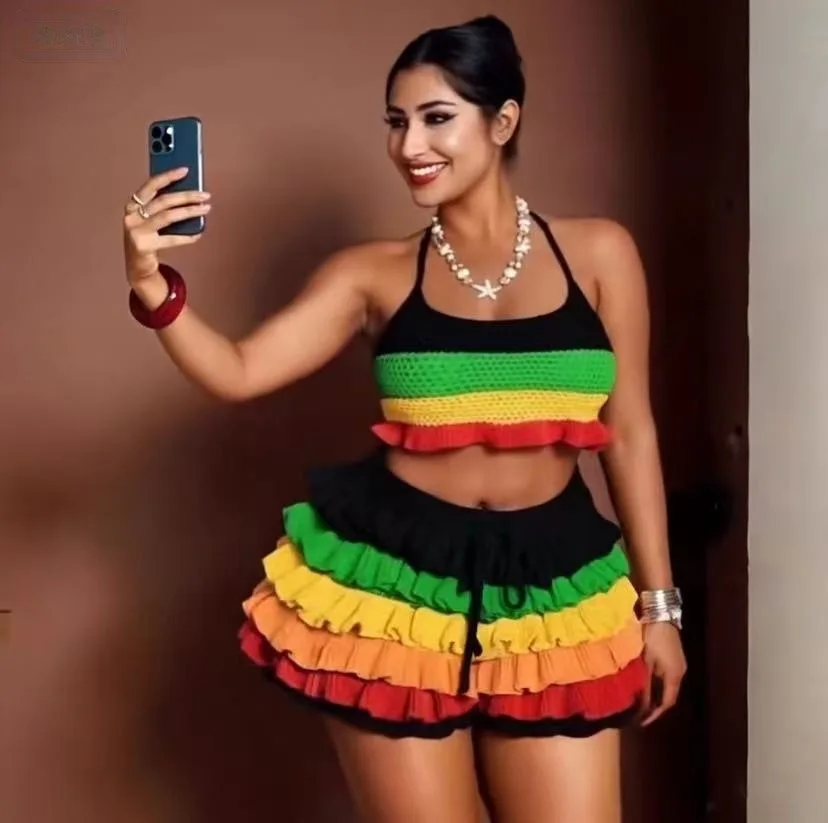 Stand out in style with this vibrant, coordinated set designed for confidence and summer fun.