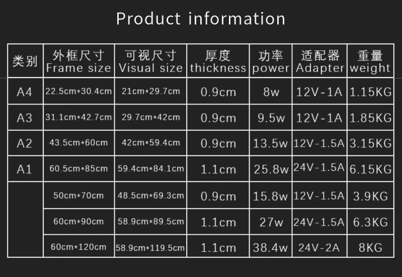 A1/A2/A3/A4/40*60cm/50*70cm/60*80cm/60*90cm/60*120cm