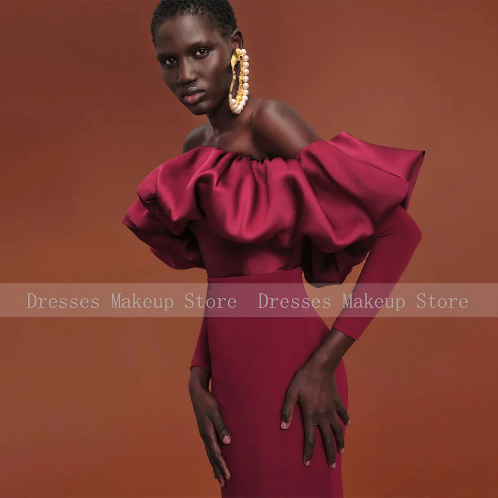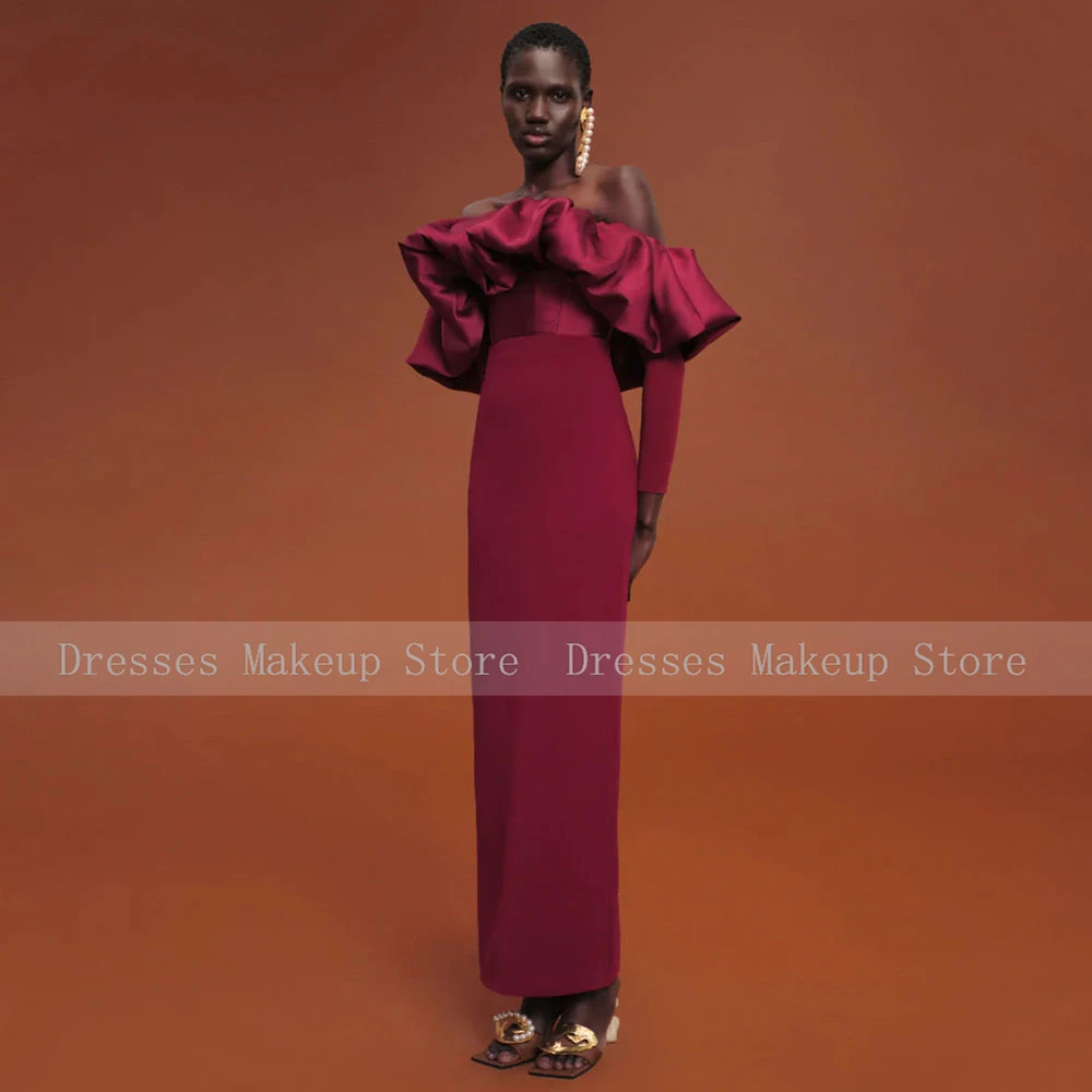 Afrincan Evening Dresses Long Off the Shoudler Sheath/Column Gown for Women Sleeves Ankle Length Simple Party Dress
