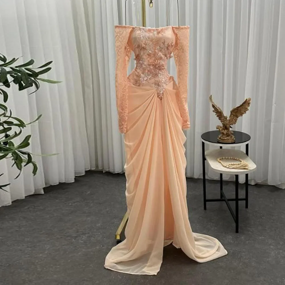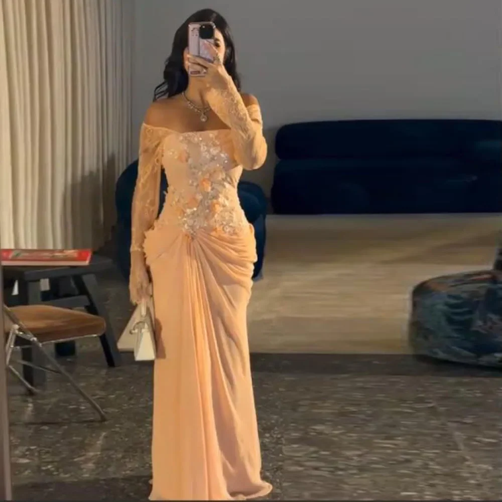 Appliques Prom Dress 2025 Pleated Customized Draped Evening Dresses Off the Shoulder with Lace Chiffon Mermaid Birthday Dresses