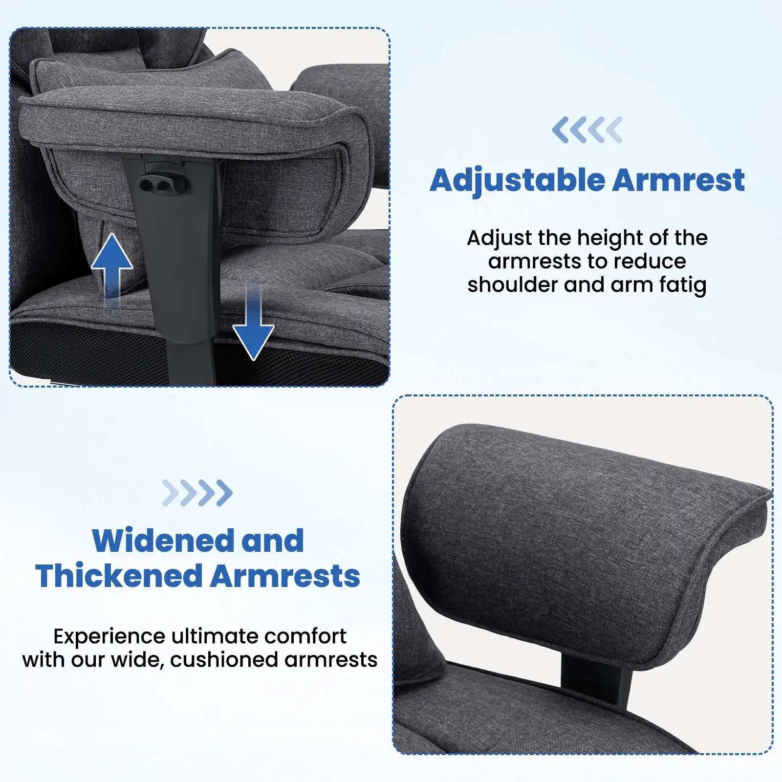 1 X High-back Office Chair with Breathable Linen Fabric, Built-in Pocket Spring Cushion, Two-point Vibrating Massage Lumbar Pillow, T-shaped Adjustable Armrest, SGS-certified Class 3 Gas Rod (Weight capacity: 450 pounds)