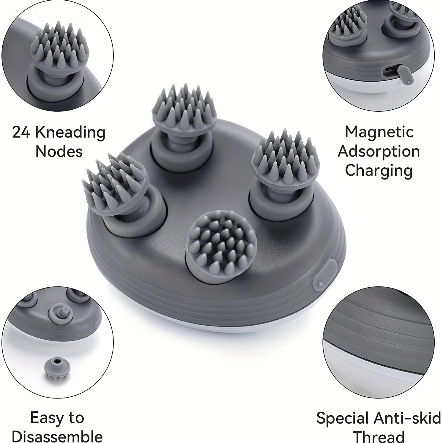 • Gentle Kneading Nodes: Soft silicone tips relax scalp and muscles.