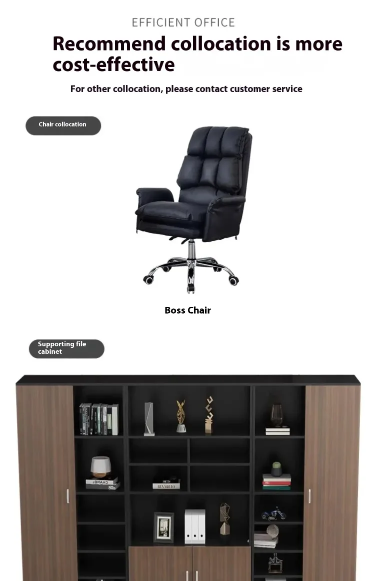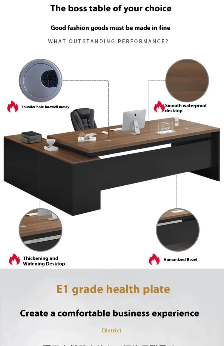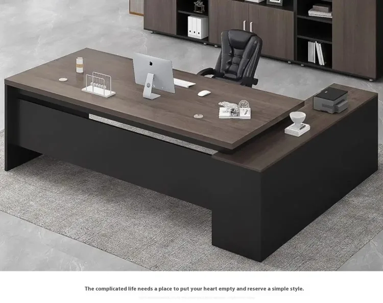 1.Large wooden desk: dark brown desktop with light-colored border, both stable and stylish