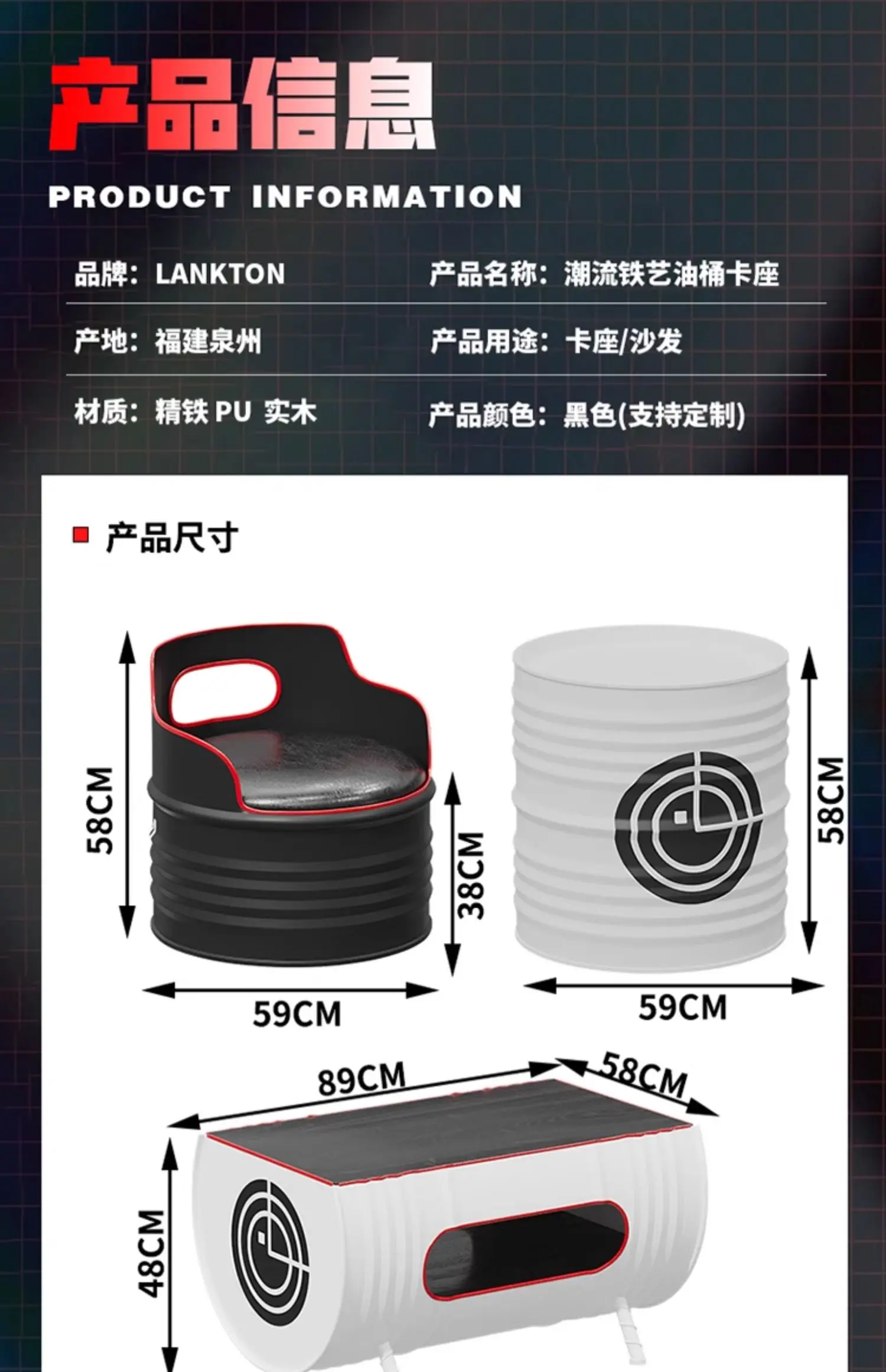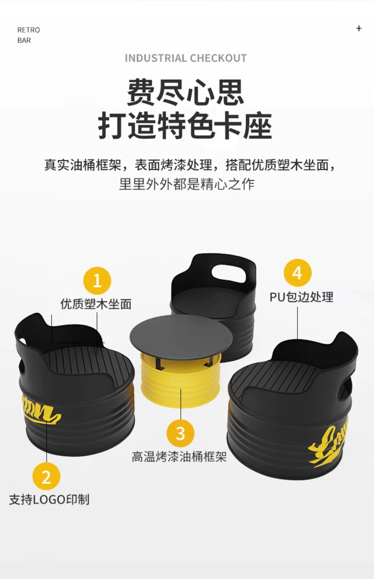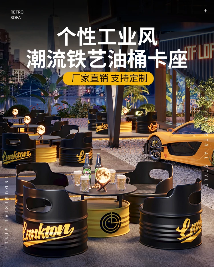 Industrial wind oil drum table and chair combination milk tea barbecue restaurant indoor and outdoor wrought iron furniture can