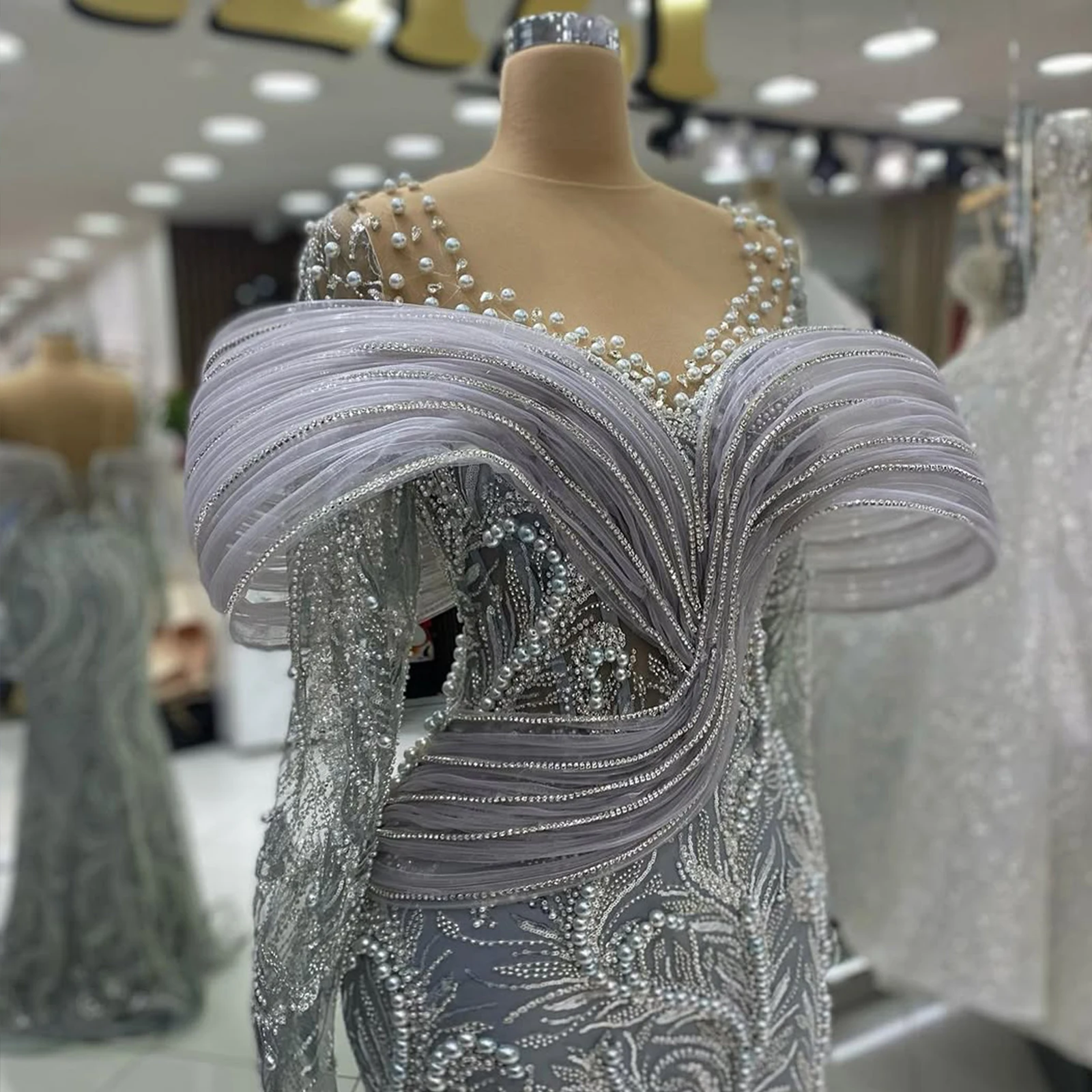 Luxury Evening Dresses 2025 Pleated Pearl Sequins Long Evening Gown Elegant Party Dress Plus Size Dresses Customizable