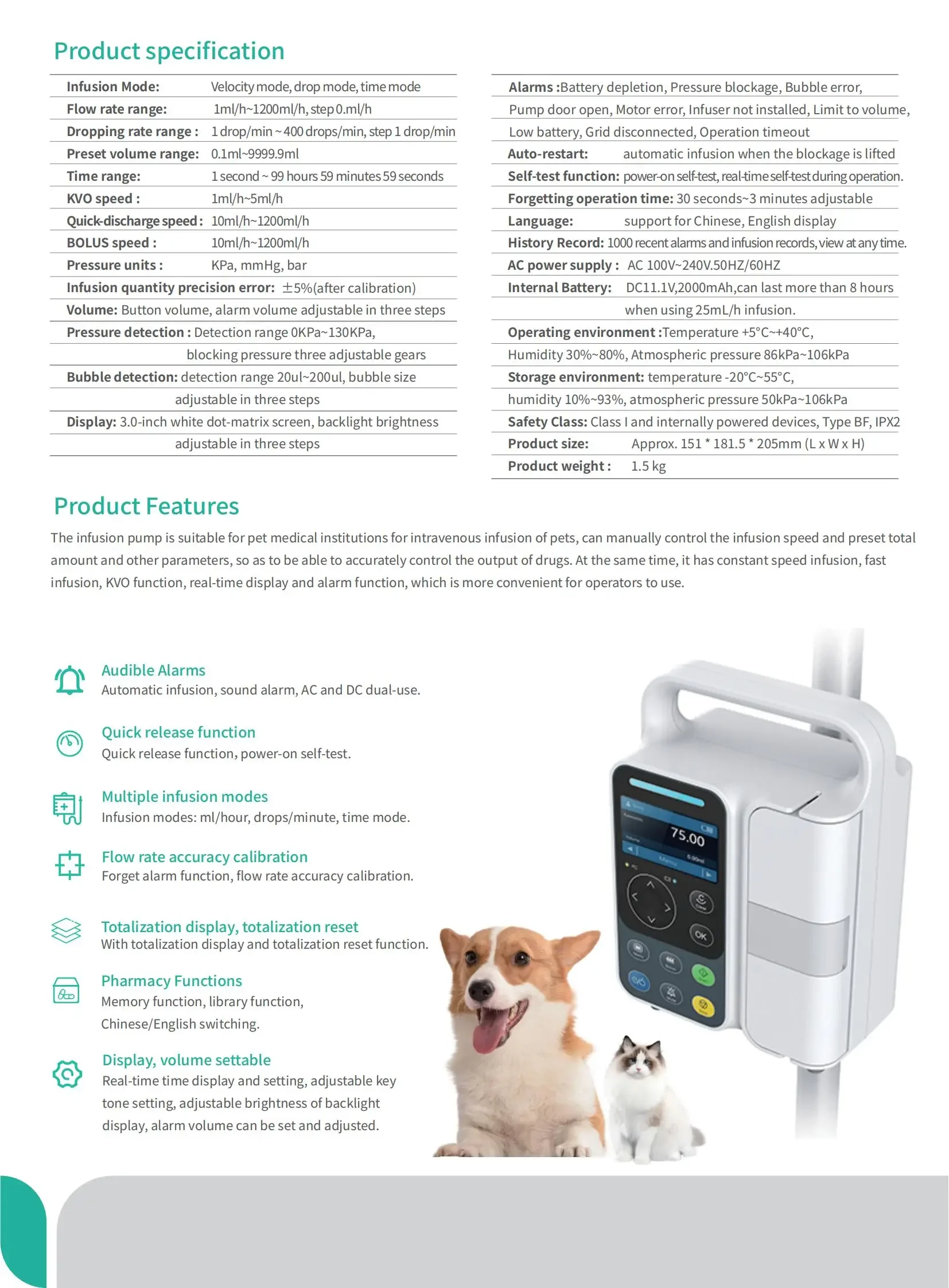 Medical Infusion Pump for Human Animal Hospital with Automatic Audible Alarm And Bubble Pressure Monitoring Upgrade