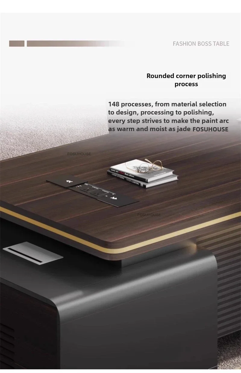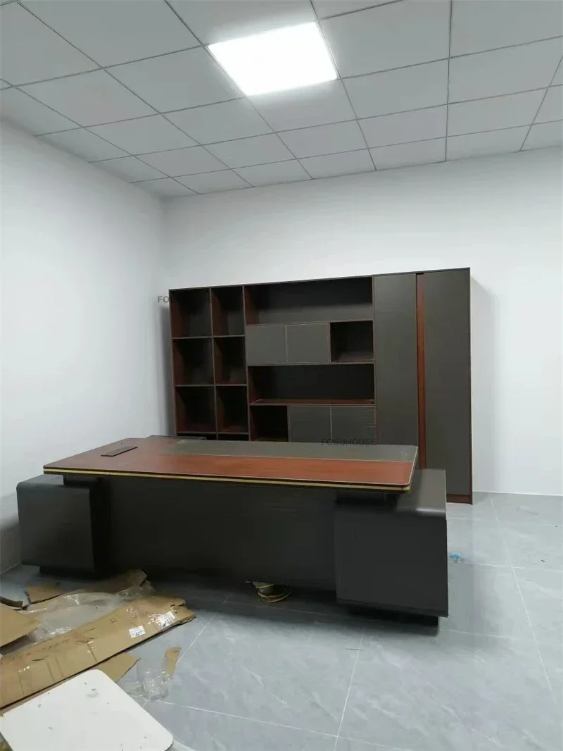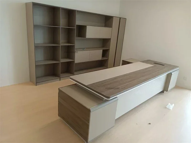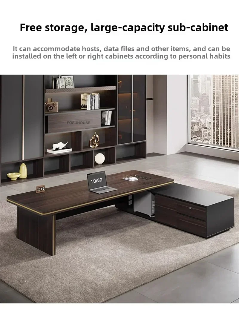 Modern Wooden Boss Office Desks Light Luxury Office Furniture Design with Storage Cabinet Study Desk Commercial President Desk