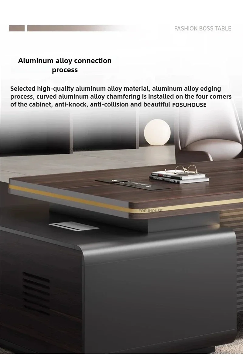 Light Luxury Wooden Boss Office Desks Modern Office Furniture Designer with Storage Cabinet Study Desk Commercial President Desk