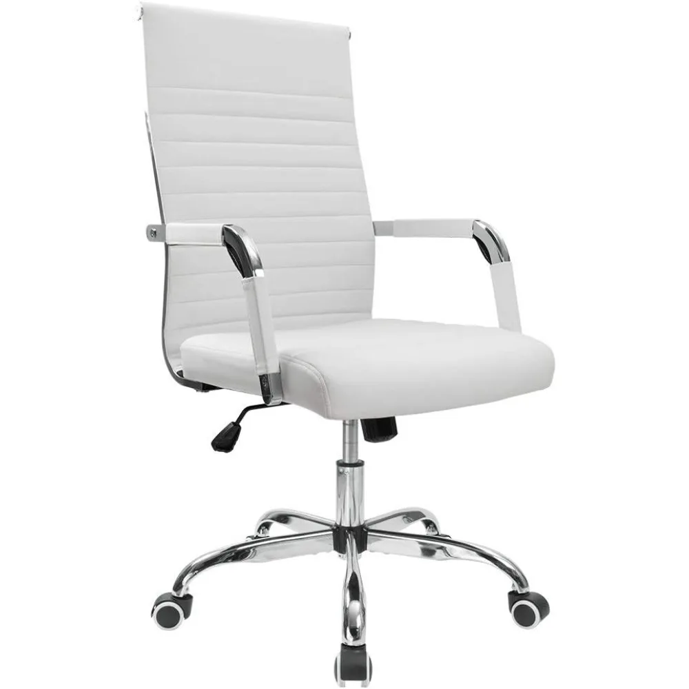 Ribbed Office Desk Chair Mid-Back PU Leather Executive Conference Task Chair Adjustable Swivel Chair with Arms